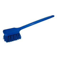 Fabricado con fibras de rigidez media, estos cepillos son muy populares en la industria alimenticia para fregar y limpiar contenedores de plástico, marmitas, sartenes, etc. El mango largo resulta muy últil para el lavado en áreas de difícil acceso o cuando hay que lavar partes de máquinas en movimiento (situación muy común en plantas procesadoras de alimentos). Disponible en varios colores para codificación sanitaria.